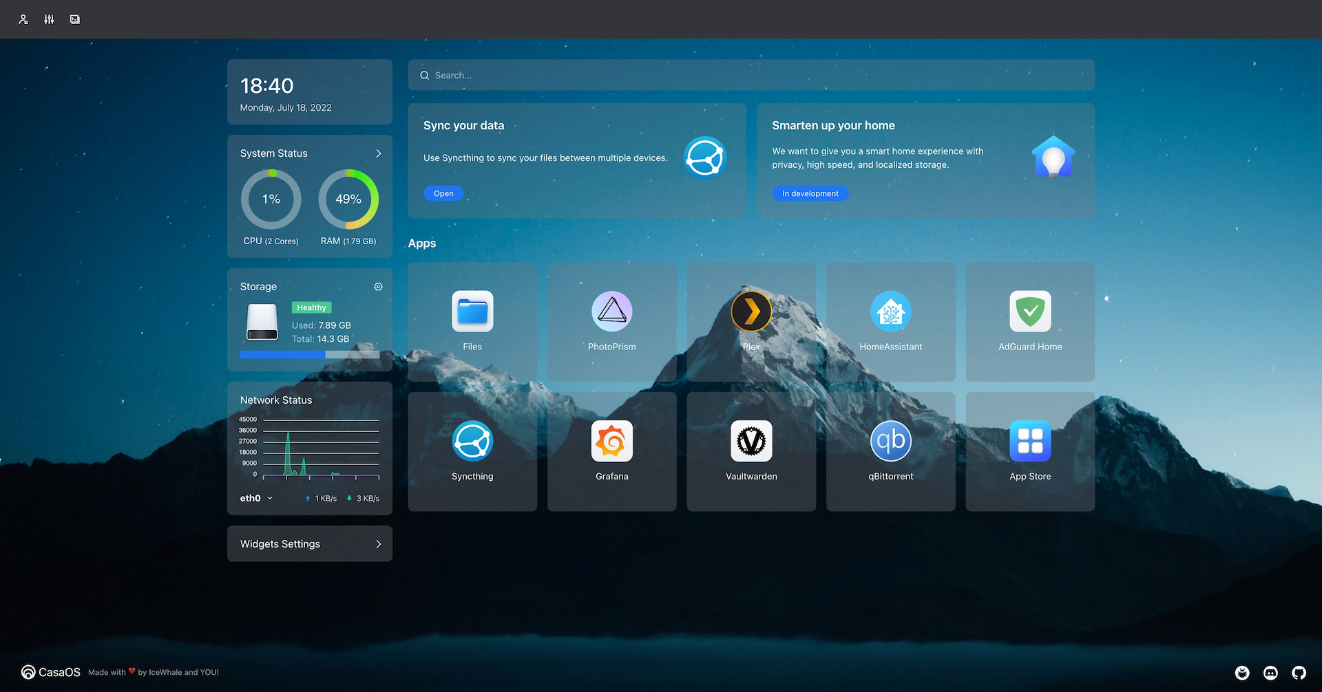 CasaOS是一个基于Docker生态系统的开源家庭云系统,专为家庭场景而设计。致力于打造全球最简单、最易用、最优雅的家居云系统